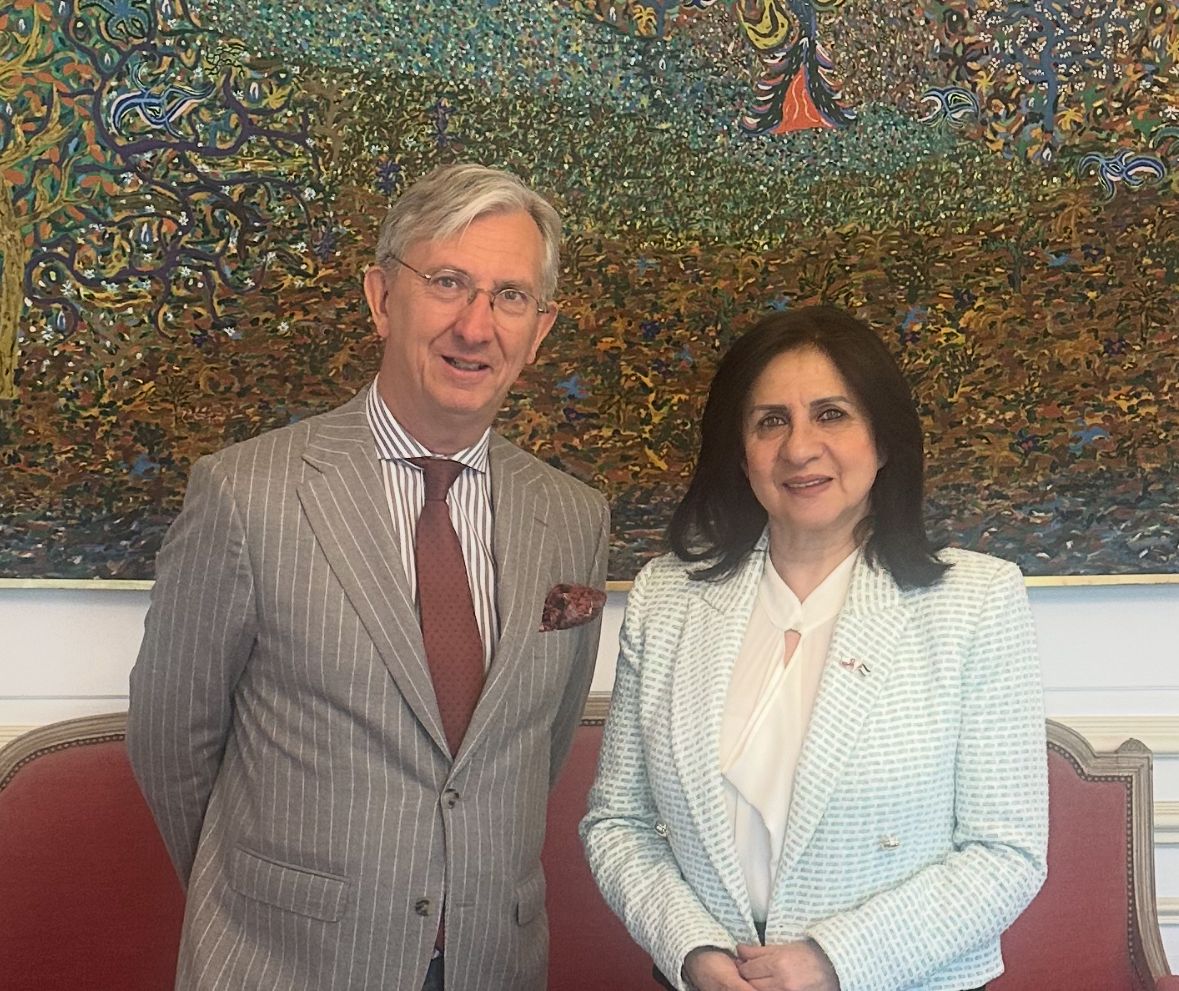 La Embajadora Vera Baboun realizó una visita de cortesía a S. E. Cyrille Rogeau, embajador de la República Francesa en Chile, para informarle sobre la situación actual en Cisjordania y Gaza.